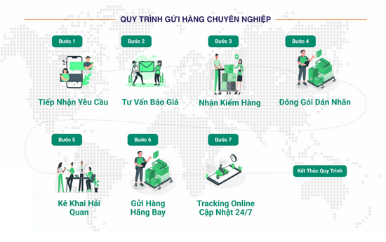 Giao hàng tận nơi, xử lý toàn bộ quy trình từ nhận hàng đến giao hàng quốc tế.